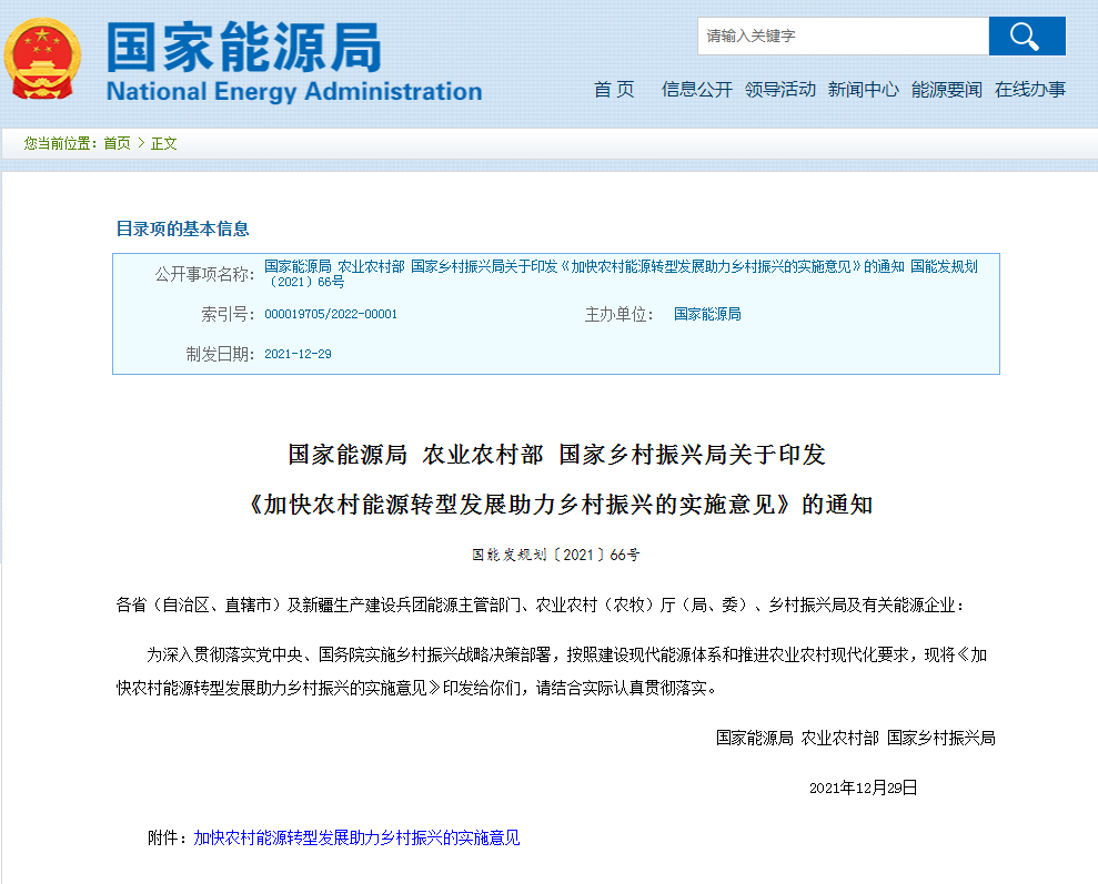 以习近平新时代中国特色社会主义思想为指导,深入贯彻党的十九大和十九届历次全会精神,立足新开展阶段,完整、准确、全面贯彻新开展理念、构建新开展格局,坚持以人民为中心的开展思想,深入落实“四个革命,一个合作”能源安全新战略,将能源绿色低碳开展作为乡村振兴的重要基础和动力,统筹开展与安全,有助于构建清洁低碳、多能融合的现代农村能源体系,全面提升农村用能质量,实现农村能源用得上、用得起、用得好,为巩固拓展脱贫攻坚成果、全面推进乡村振兴给予坚强支撑。